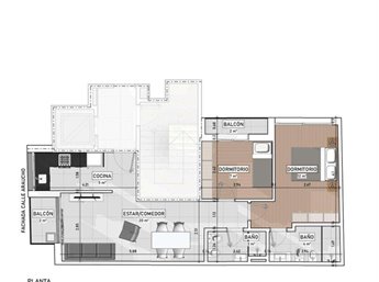 La unidad cuenta con un área de 60mts2, con living comedor, cocina aislada, baño general, amplio dormitorio principal con baño en suite y espacio para roperia/vestidor y segundo dormitorio. Cuenta con balcón hacia el frente con salida desde el estar y balcón al fondo con salida desde segundo dormitorio, conformando un área de 64 mts 2 .