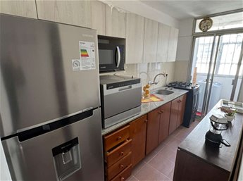 El apartamento cuenta con dos dormitorios amplios, un baño completo, cocina definida y un cómodo living comedor. Dispone de muebles funcionales, lavadero integrado y una terraza para disfrutar del aire libre. La calefacción se resuelve mediante aire acondicionado tipo split, asegurando el confort en cualquier estación del año. Ubicado en un tercer piso y al frente, ofrece una vista despejada. El edificio cuenta con servicio de portería, brindando seguridad y tranquilidad a sus residentes.