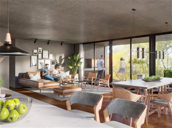 La unidad constara de un hall recibidor que conecta con un gran living comedor rodeado de ventanales y conectando con una terraza super amplia con parrillero propio de la unidad, siguiendo por la cocina integrada con terraza lavadero, un baño completo y 2 dormitorios, ambos en suite y uno con vestidor.